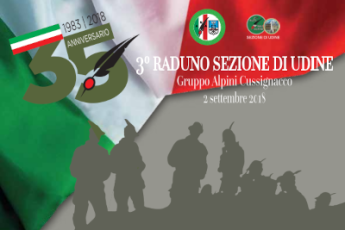 In occasione della 35° anniversario di fondazione del gruppo alpini di Udine Cussignacco e 3° raduno della sezione A.N.A. di Udine , che si terrà a Udine il 31 settembre, 1 e 2 settembre, le Poste Italiane porranno in uso uno speciale annullo del quale si riproduce l’impronta: