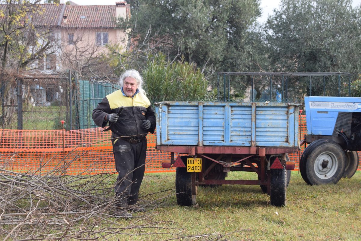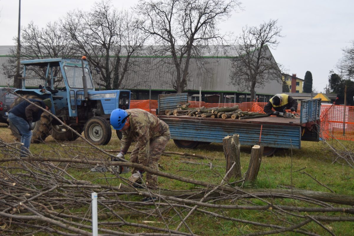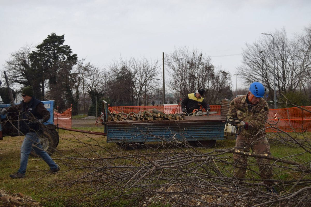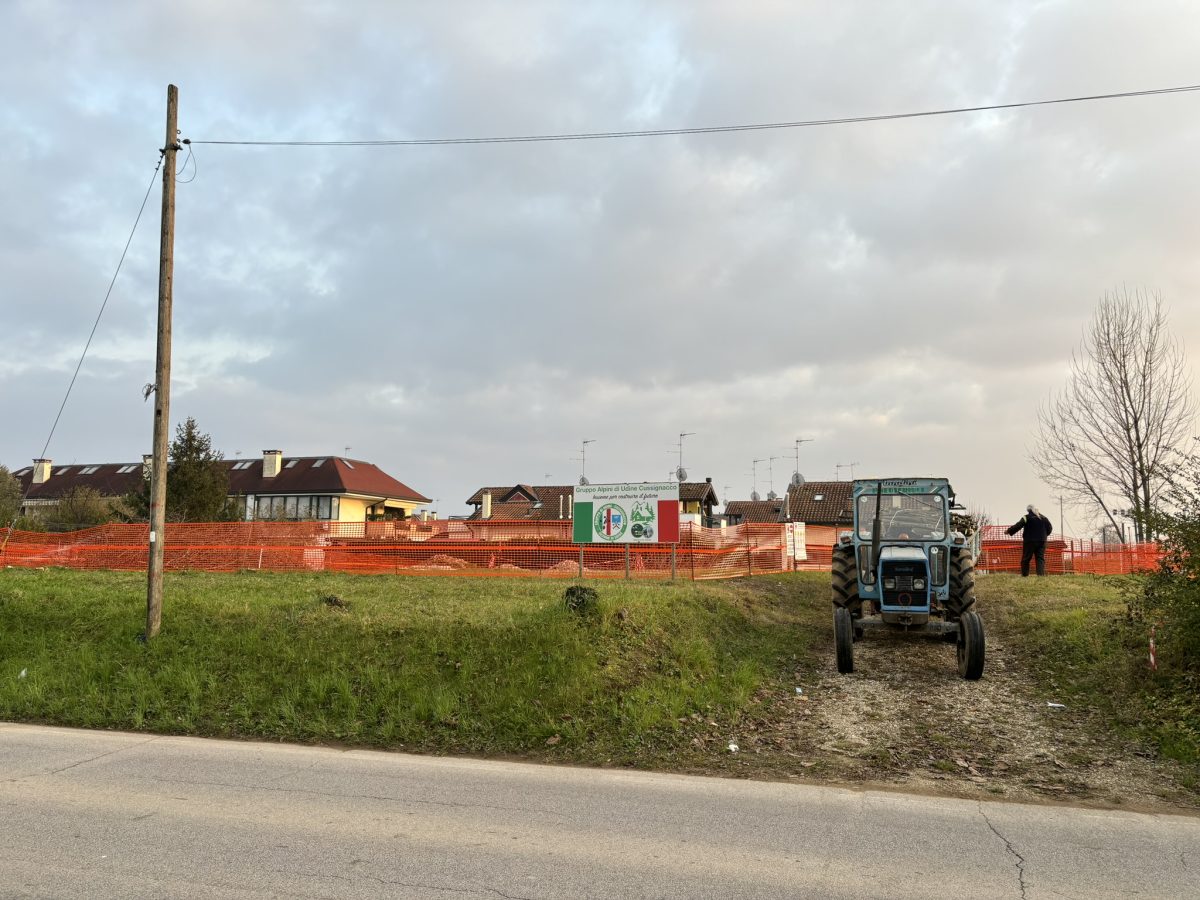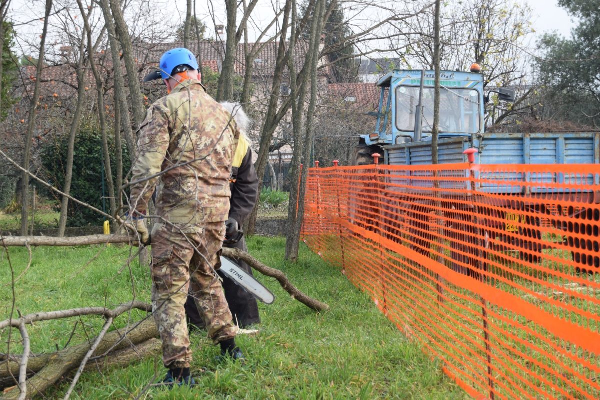 Dopo aver partecipato con successo la sera precedente alla trasmissione televisiva “sul cappello che noi portiamo” su Telefriuli 5 volontari hanno ripulito il terreno dagli alberi che avrebbero intralciato l’edificazione della nuova sede del gruppo.