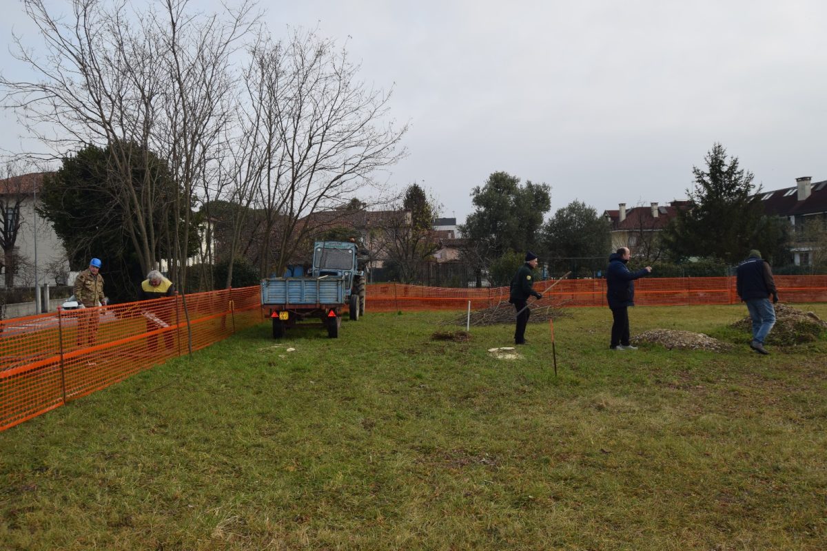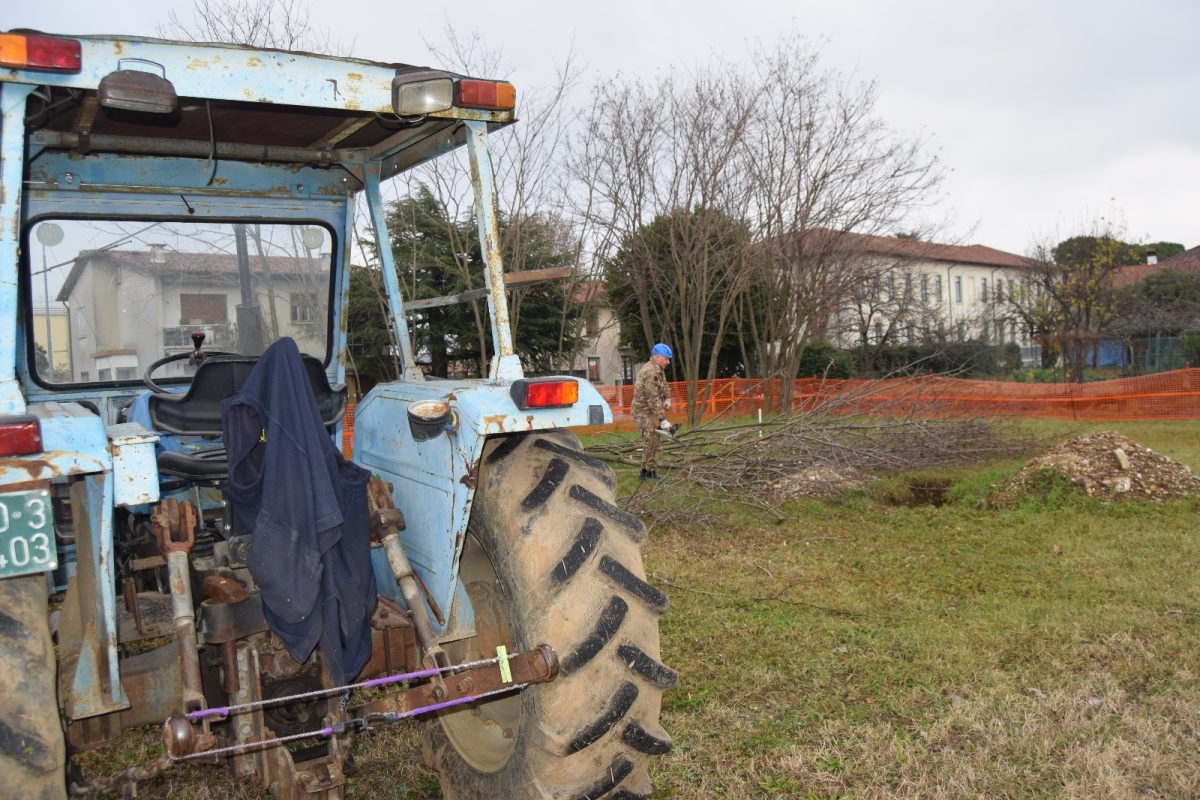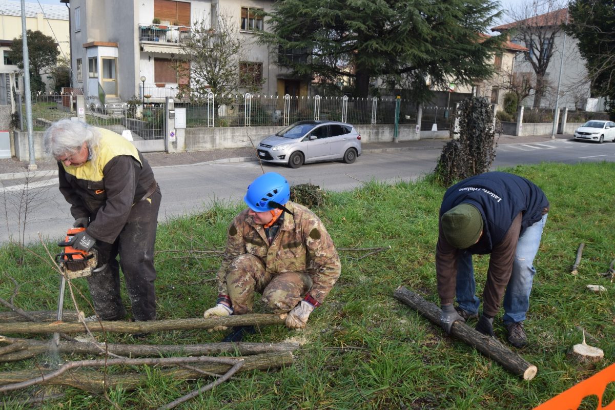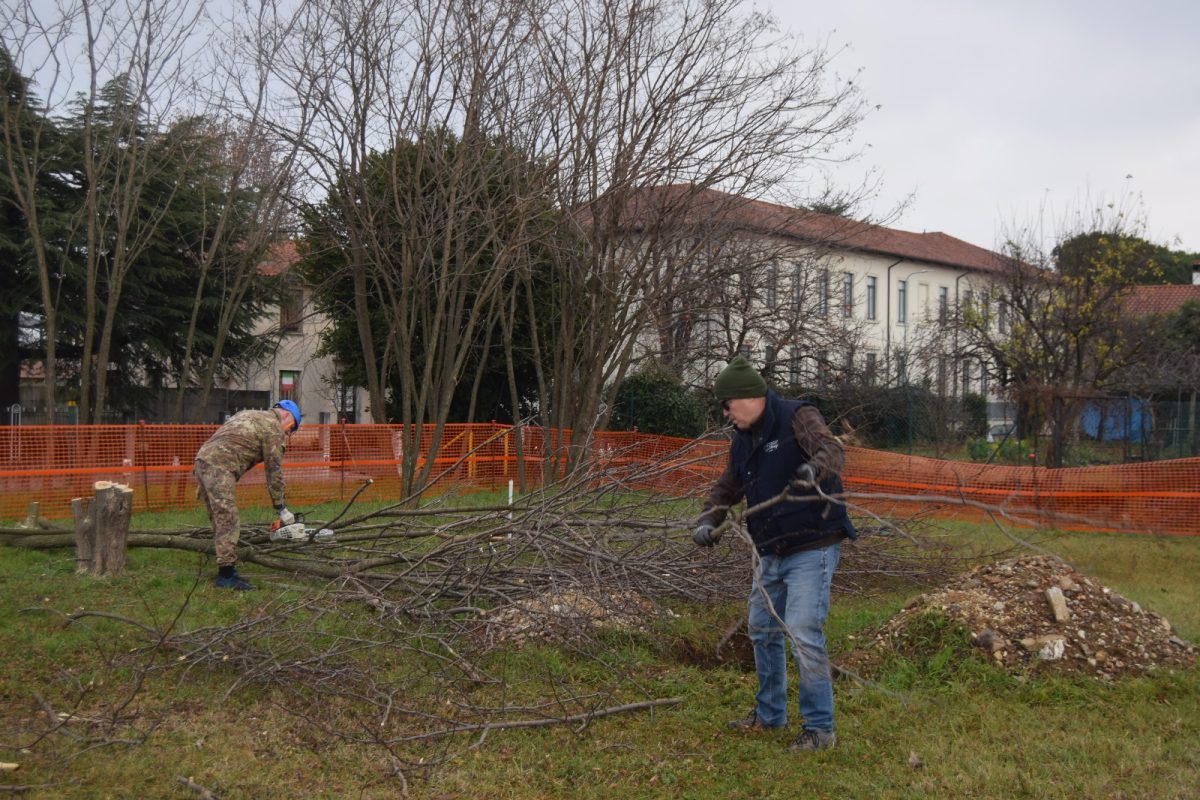 Dopo aver partecipato con successo la sera precedente alla trasmissione televisiva “sul cappello che noi portiamo” su Telefriuli 5 volontari hanno ripulito il terreno dagli alberi che avrebbero intralciato l’edificazione della nuova sede del gruppo.