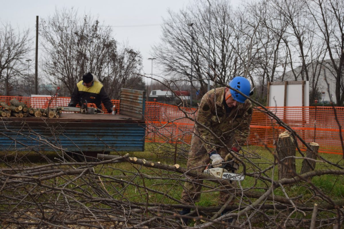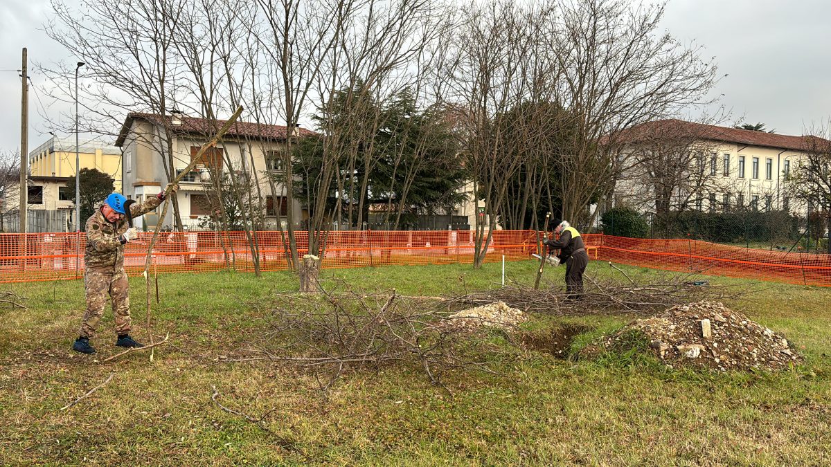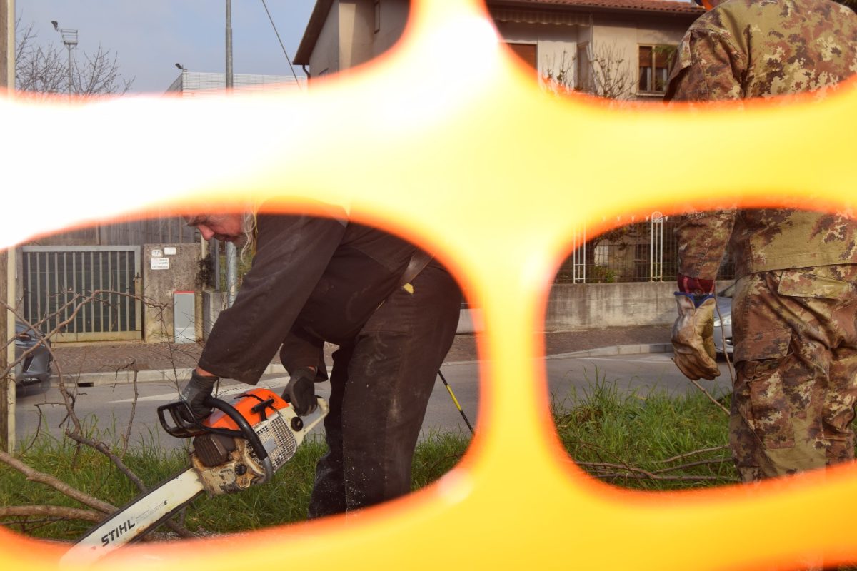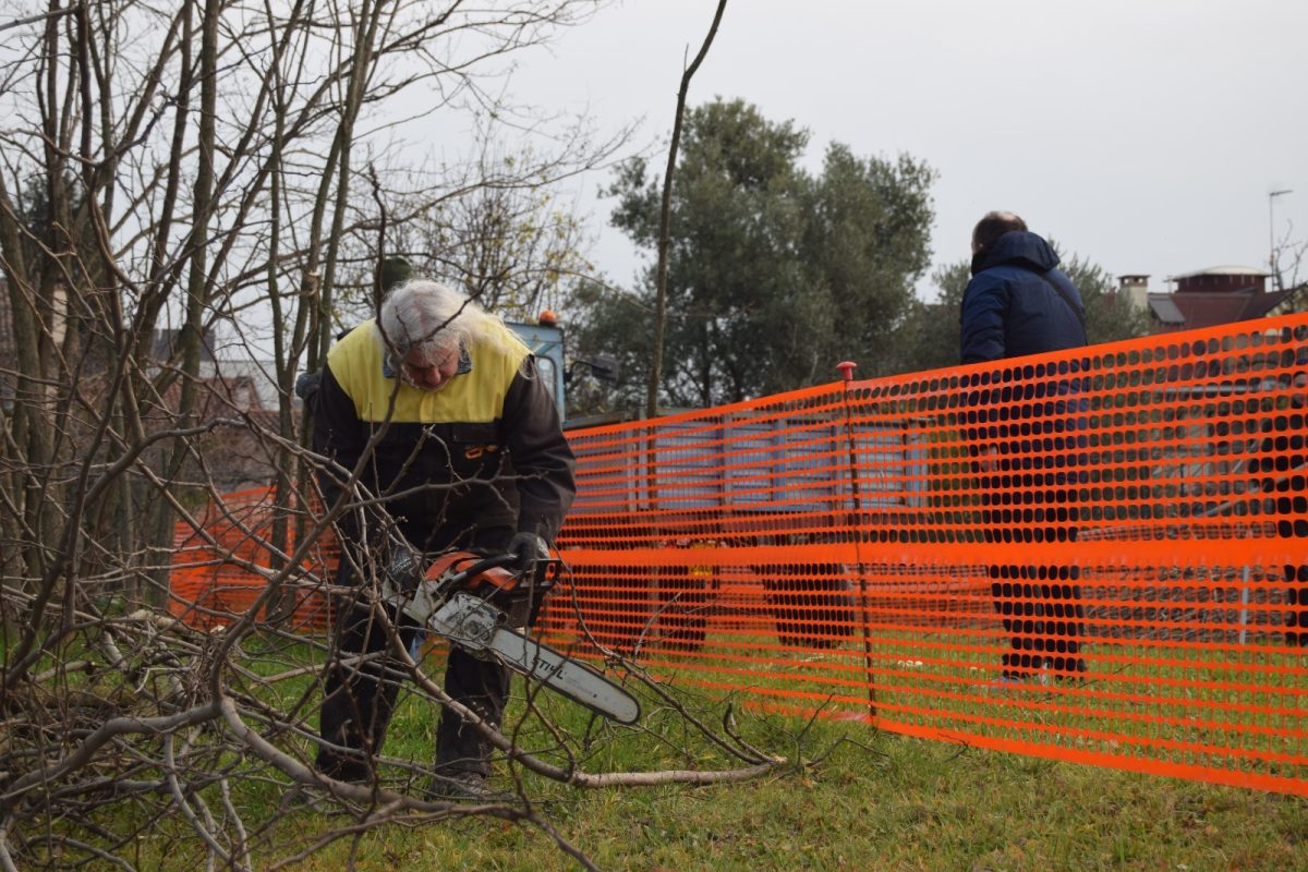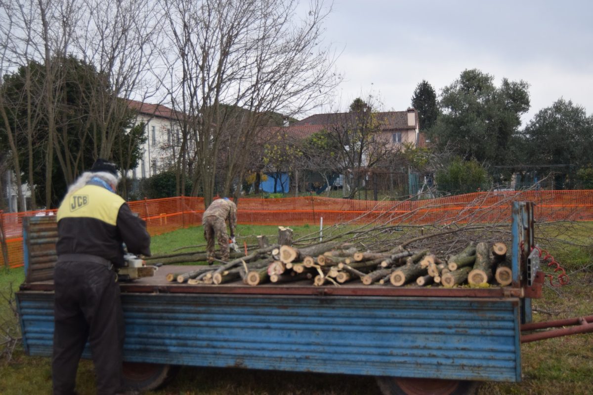 Dopo aver partecipato con successo la sera precedente alla trasmissione televisiva “sul cappello che noi portiamo” su Telefriuli 5 volontari hanno ripulito il terreno dagli alberi che avrebbero intralciato l’edificazione della nuova sede del gruppo.